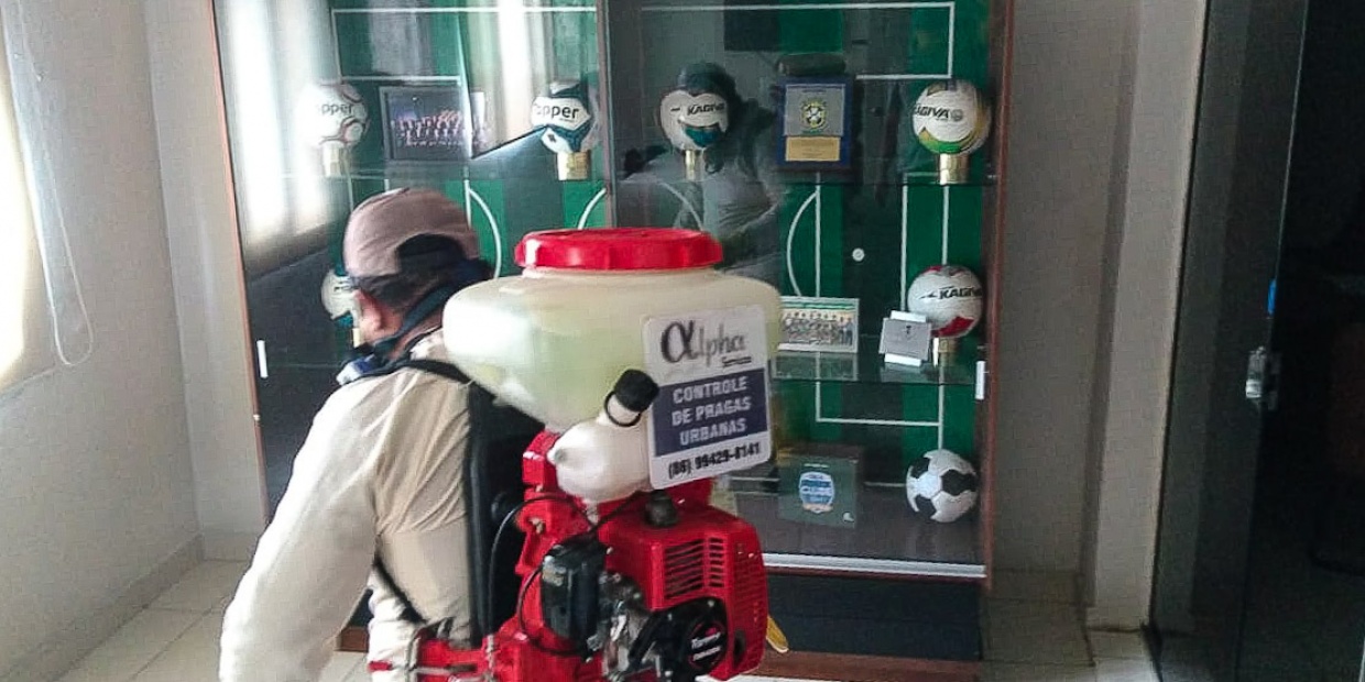 Procedimento de desinfecção e limpeza de ambientes foi realizado para prevenção contra o coronavírus.