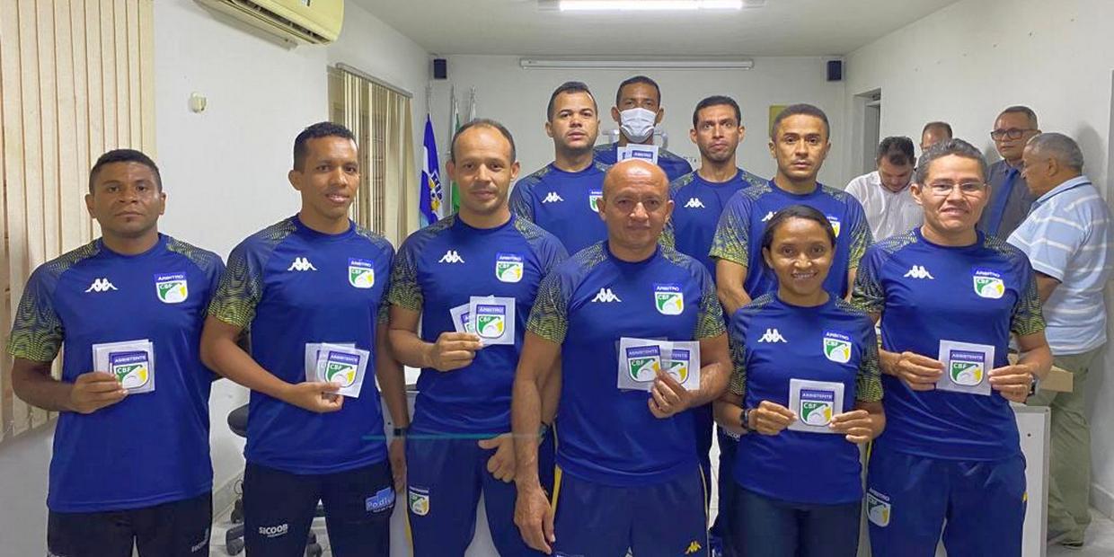 A Federação de Futebol do Piauí entregou nesta segunda-feira as insígnias da CBF para os árbitros, assistentes e analistas para a temporada de 2022. Foram contemplados seis árbitros principais, 10 assistentes, dentre eles as assistentes Izaura de Sousa e Silva e Maura Cunha Costa e três analistas de desempenho.