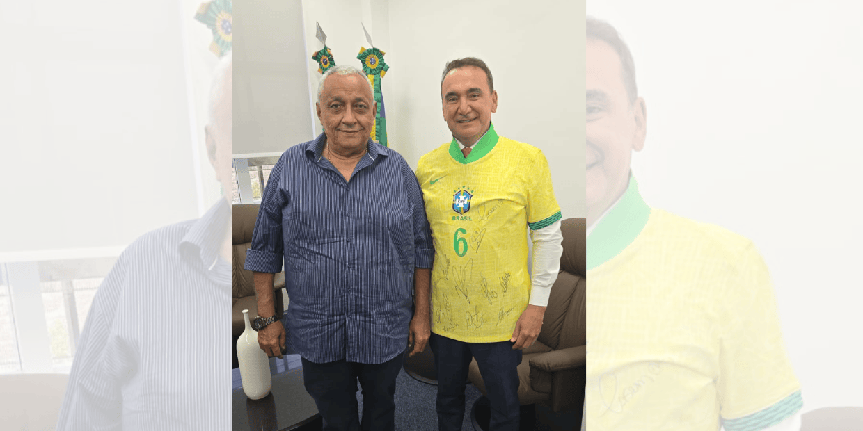 Durante o encontro, que ocorreu no gabinete da Corregedoria-Geral, o presidente Robert Brown presenteou o Desembargador com uma camisa oficial da Seleção Brasileira, autografada, simbolizando respeito institucional e valorização do esporte piauiense.